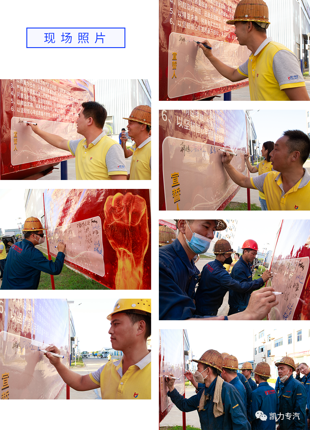 “我宣誓:時(shí)刻牢記質(zhì)量是凱力專(zhuān)汽的生命線,堅(jiān)定思想不動(dòng)搖;以質(zhì)量為己任,認(rèn)真履行質(zhì)量職責(zé),狠抓工作落實(shí),堅(jiān)守質(zhì)量紅線,捍衛(wèi)質(zhì)量尊嚴(yán);嚴(yán)格執(zhí)行質(zhì)量標(biāo)準(zhǔn),嚴(yán)把產(chǎn)品質(zhì)量關(guān),不合格產(chǎn)品絕不放行;問(wèn)題及時(shí)響應(yīng),迅速處理解決,杜絕推諉扯皮,強(qiáng)化責(zé)任擔(dān)當(dāng);以精益求精、較真務(wù)實(shí)的作風(fēng),保證產(chǎn)品質(zhì)量、工作質(zhì)量、經(jīng)營(yíng)質(zhì)量……”9月10日,隨著鏗鏘有力的誓言在公司綜合辦公大樓前響起,公司2021年“質(zhì)量月”系列活動(dòng)正式拉開(kāi)序幕。公司梁俊總經(jīng)理出席活動(dòng),質(zhì)量總監(jiān)韓旭主持活動(dòng)。