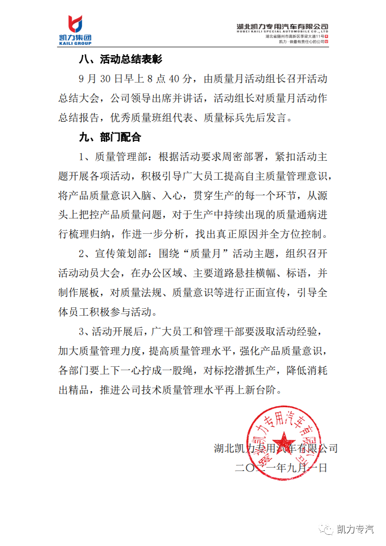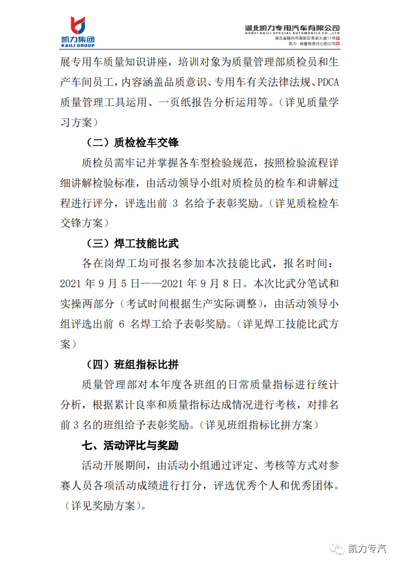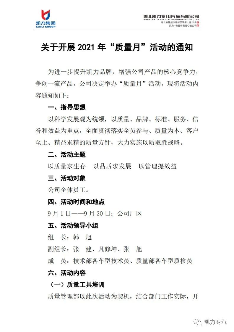 凱力專(zhuān)汽開(kāi)展2021“質(zhì)量月”