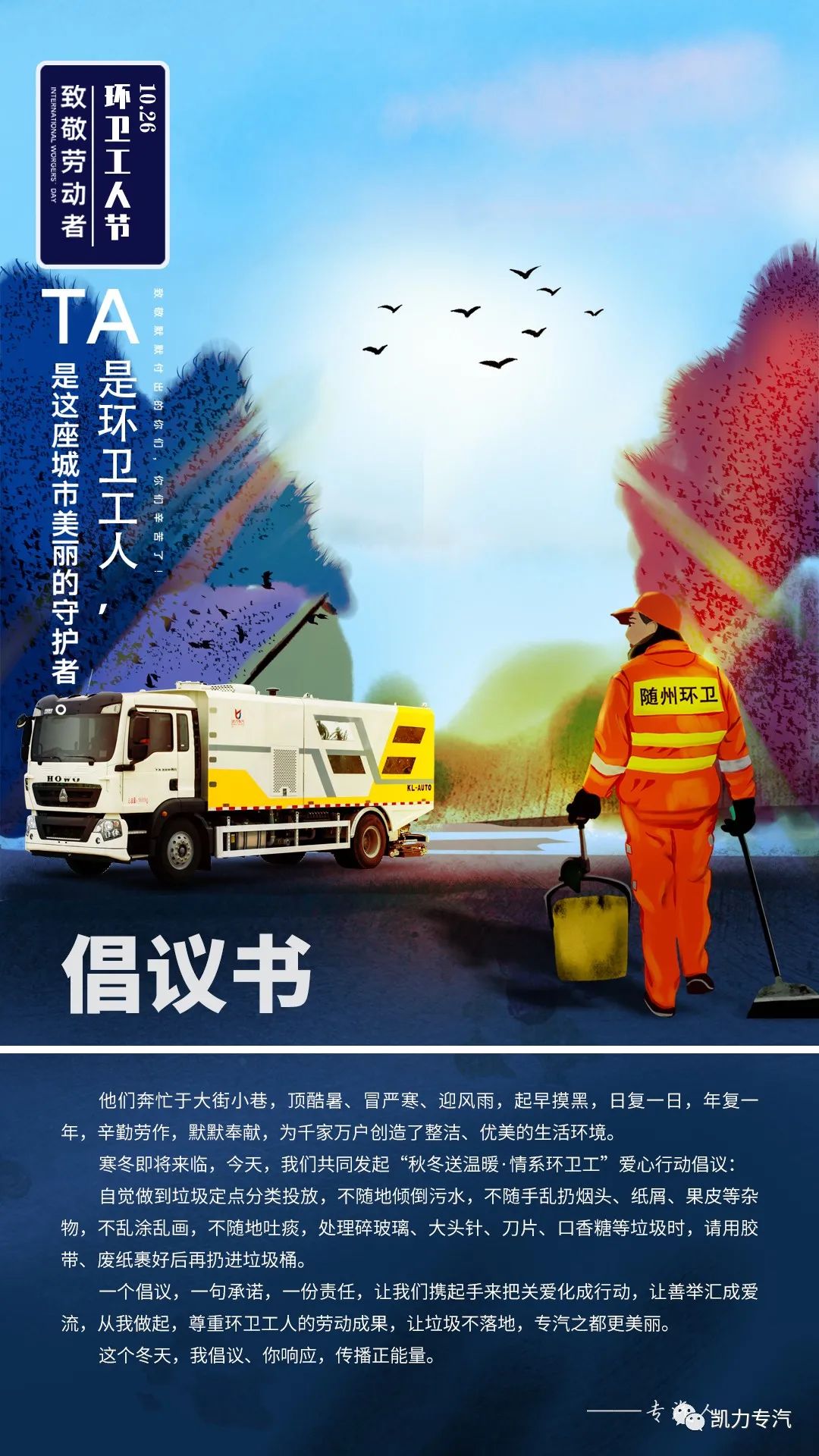 一直以來,凱力專汽在企業(yè)發(fā)展的同時(shí),始終踐行企業(yè)社會(huì)責(zé)任,致力于反哺社會(huì),回饋各界支持。以實(shí)際行動(dòng)關(guān)愛環(huán)衛(wèi)工人,呼吁社會(huì)關(guān)心支持環(huán)衛(wèi)事業(yè),感恩環(huán)衛(wèi)工人,尊重他們的勞動(dòng),做好垃圾入箱,積極踐行垃圾分類,讓環(huán)衛(wèi)工人們真正感受到社會(huì)的真情與溫暖,一起為整潔宜居的城市環(huán)境而努力。