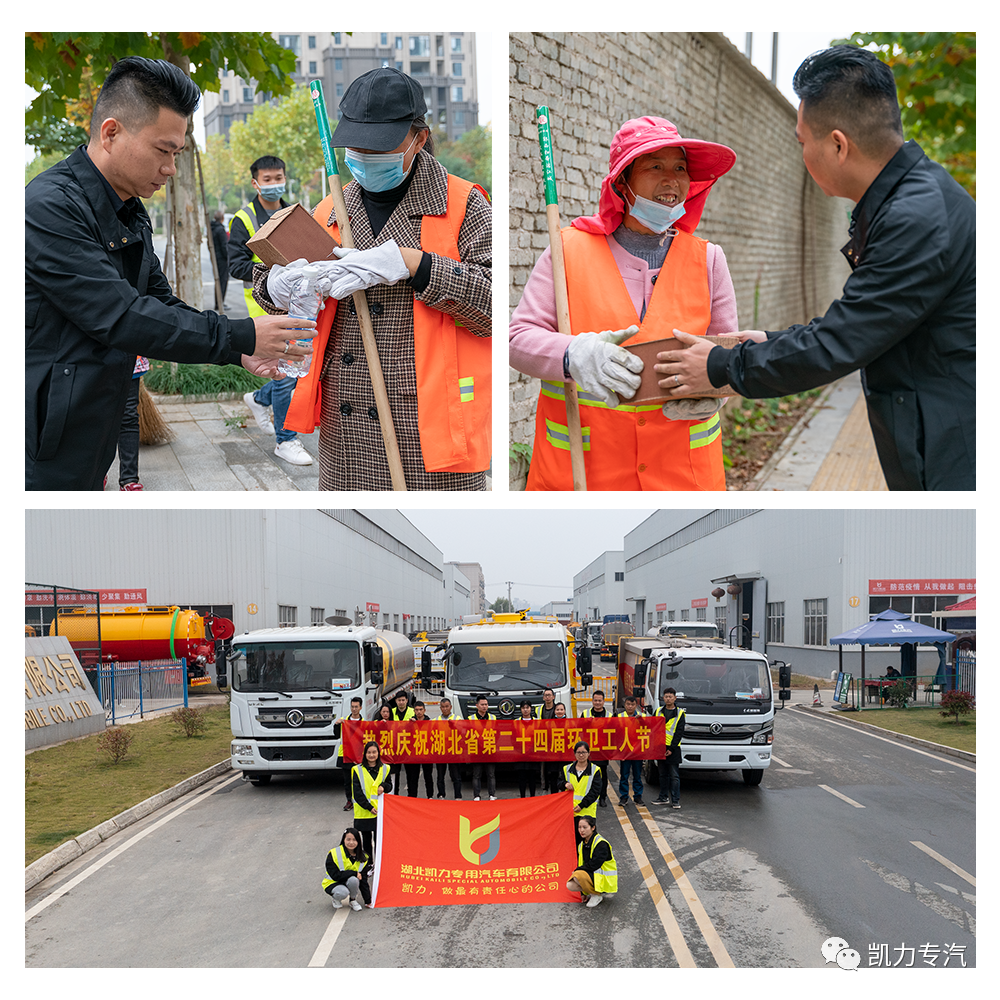 今年的10月26日是湖北省第二十四個(gè)環(huán)衛(wèi)工人節(jié),“寧愿一人臟,換來萬家潔”,環(huán)衛(wèi)工人用辛勤勞動(dòng)換來了城市環(huán)境的潔凈美好,值得所有人的尊重與理解。為了表達(dá)對(duì)城市“美容師”的敬意,凱力專汽攜手高新區(qū)環(huán)衛(wèi)管理部門積極開展“秋冬送溫暖·情系環(huán)衛(wèi)工”的暖心活動(dòng),關(guān)心關(guān)愛環(huán)衛(wèi)工人,并呼吁全社會(huì)積極參與,共同建設(shè)美好家園。