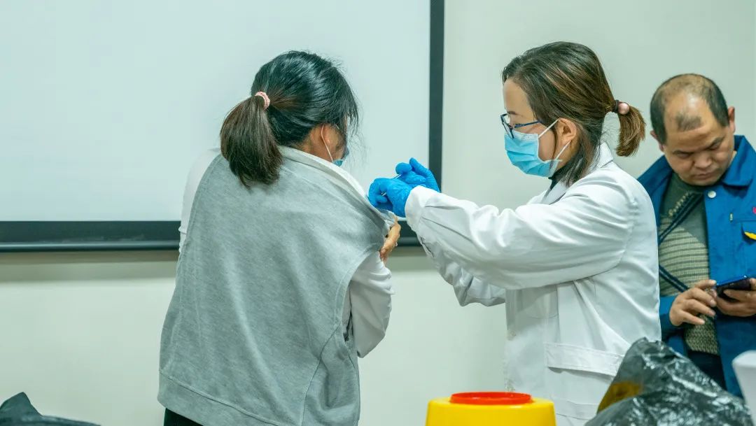 “麻煩你核對信息后到接種室,記得帶上身份證......”12月30日上午,凱力專汽工業(yè)園區(qū),現(xiàn)場工作人員正在指引企業(yè)員工有序進(jìn)行新冠病毒疫苗接種。