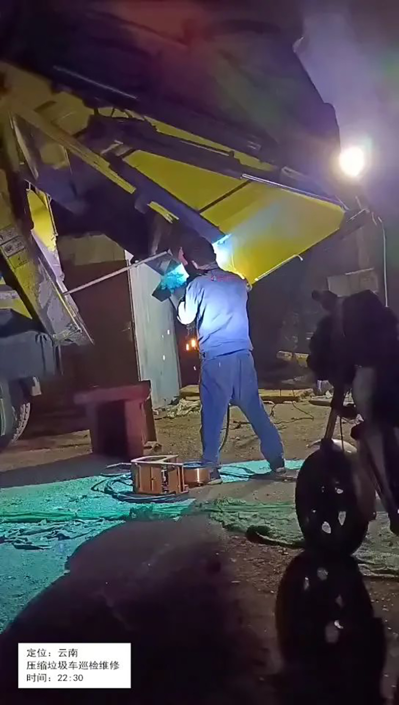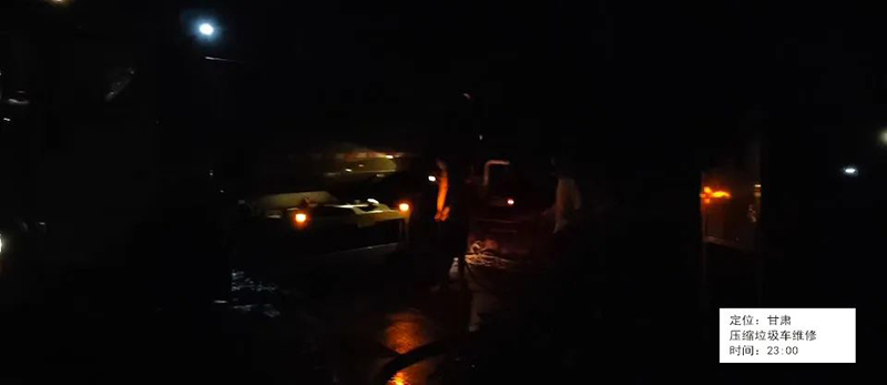甘肅,售后人員臨時接到報修電話,為不影響客戶第二天的工作,連夜對客戶壓縮垃圾車進行維修,完工時凌晨一點。