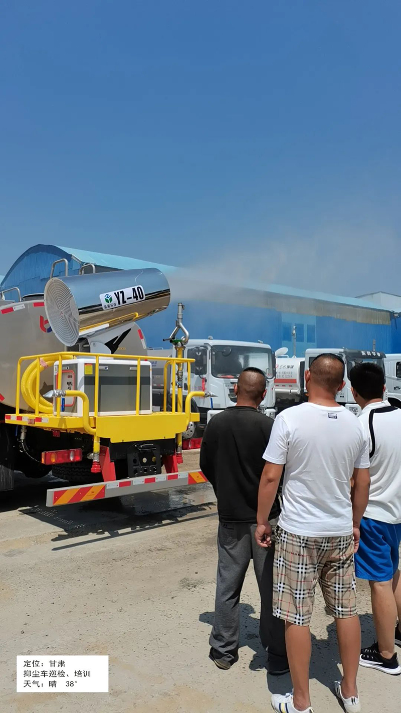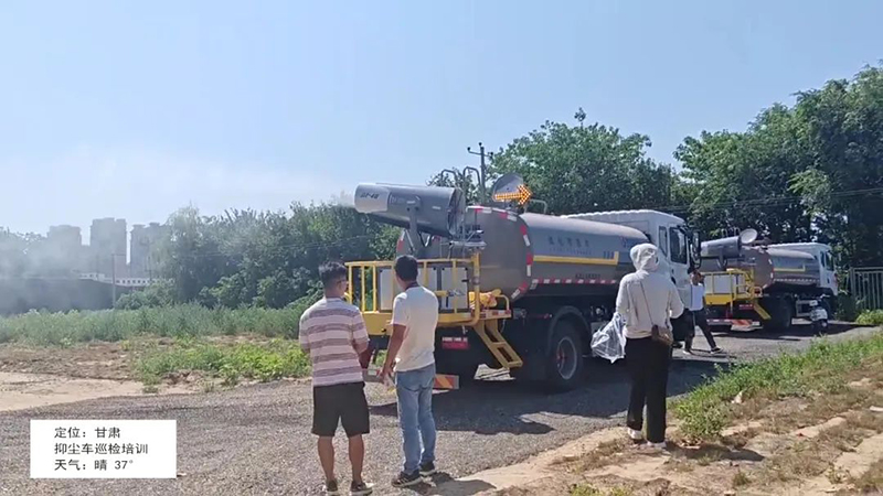 甘肅,連續(xù)高溫天氣,當日溫度高達38度,售后人員對客戶剛購買的抑塵車進行車輛巡檢,功能測試培訓,現(xiàn)場對新意向客戶進行產品講解和答疑解惑