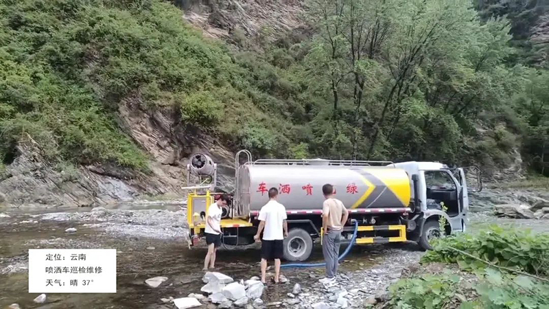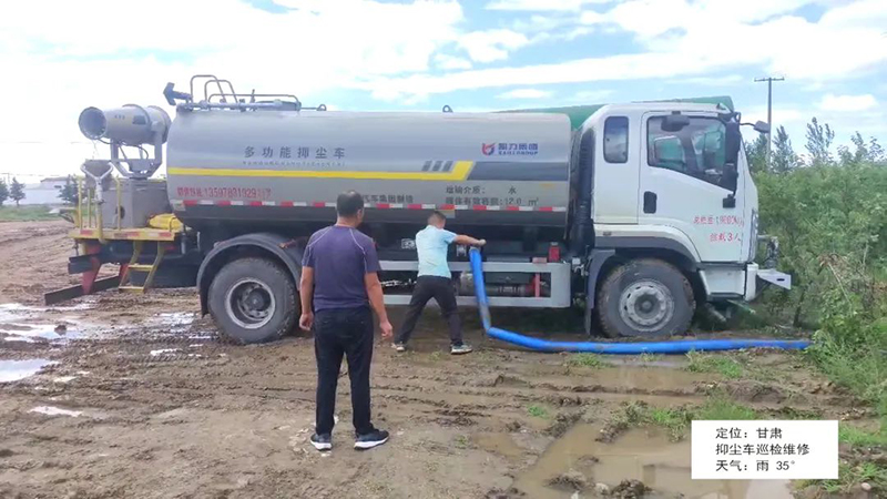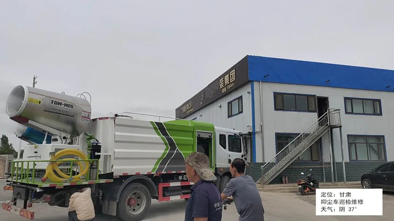 甘肅,高溫37度,陰天悶熱,售后人員對抑塵車進行巡檢