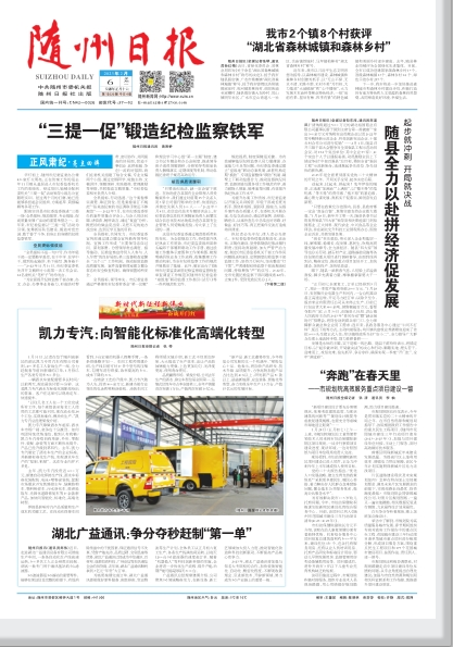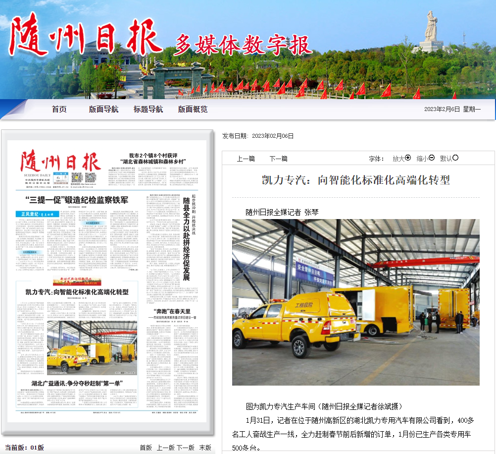 隨州日?qǐng)?bào)以《凱力專汽:向智能化標(biāo)準(zhǔn)化高端化轉(zhuǎn)型》為題進(jìn)行頭版報(bào)道。