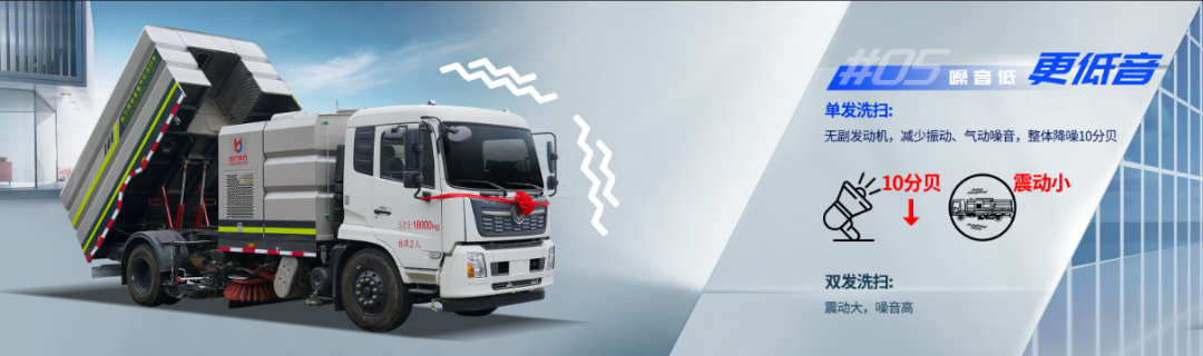 單發(fā)電氣化洗掃車(chē)無(wú)副發(fā)動(dòng)機(jī),相較雙發(fā)洗掃車(chē)振動(dòng)減少、噪音降低,整體降噪10分貝,駕駛也舒適。