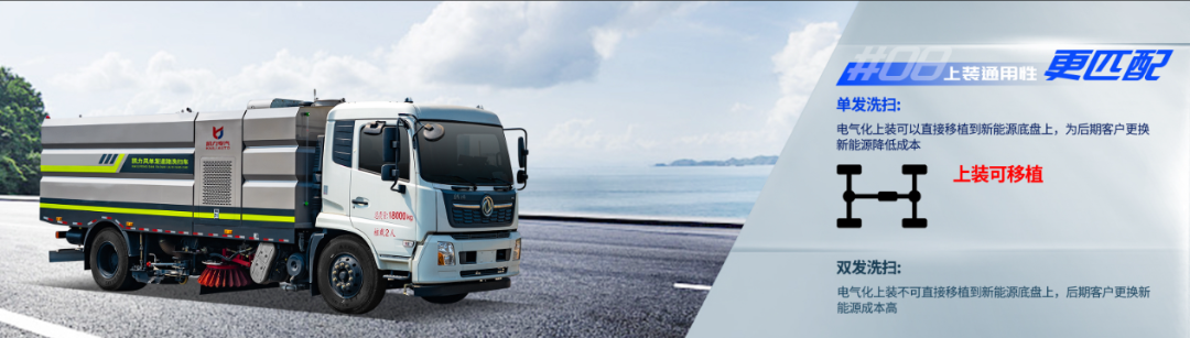 單發(fā)電氣化洗掃車(chē)上裝可以直接移植到新能源底盤(pán)上,為后期客戶(hù)更換新能源降低成本。雙發(fā)洗掃車(chē)上裝不能移植新能源底盤(pán),后期需整車(chē)更換,費(fèi)用更高。