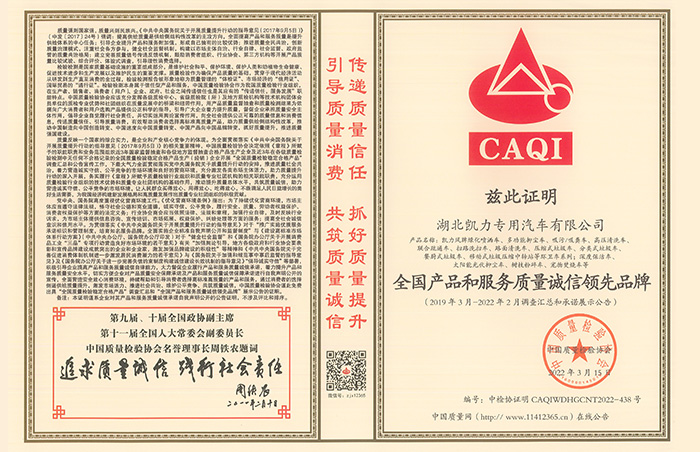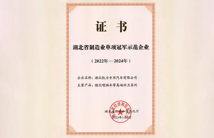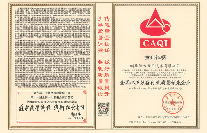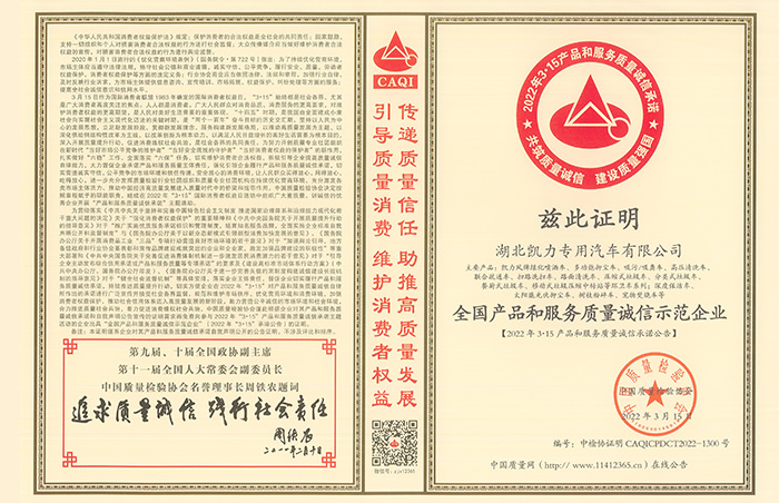 國家高新技術(shù)企業(yè)、專精特新小巨人企業(yè)、湖北省制造業(yè)單項(xiàng)冠軍企業(yè)(產(chǎn)品)、湖北省上云標(biāo)桿、凱力風(fēng)”商標(biāo)入選《湖北省優(yōu)勢商標(biāo)名錄》、全國產(chǎn)品和服務(wù)質(zhì)量誠信示范企業(yè)、全國質(zhì)量信譽(yù)保障產(chǎn)品、全國產(chǎn)品和服務(wù)質(zhì)量誠信領(lǐng)先品牌、全國專用車行業(yè)質(zhì)量領(lǐng)先企業(yè)。