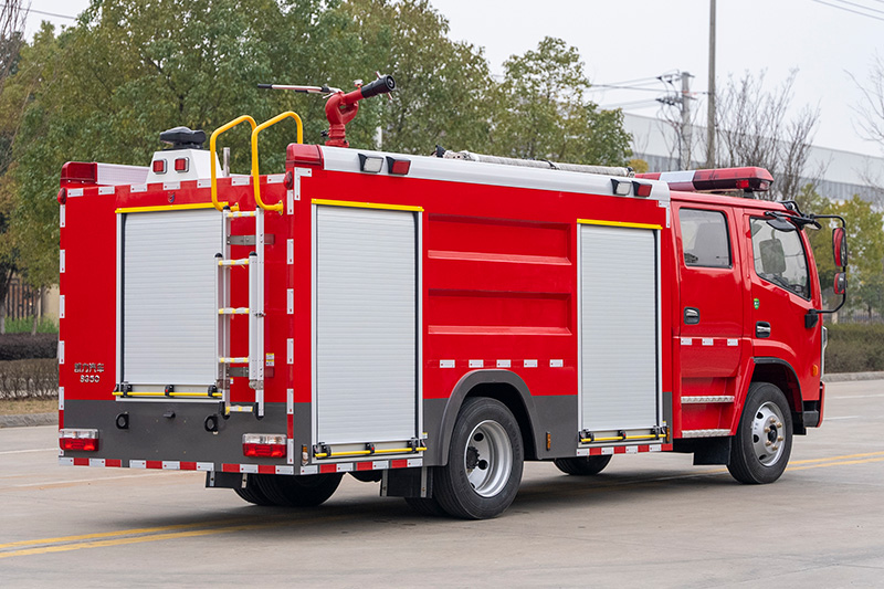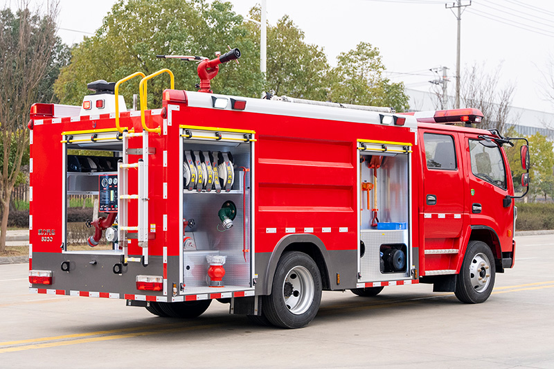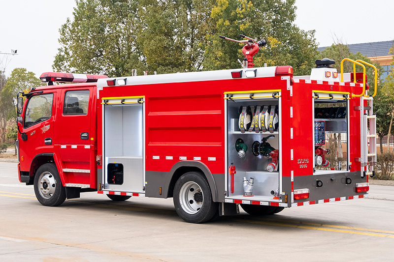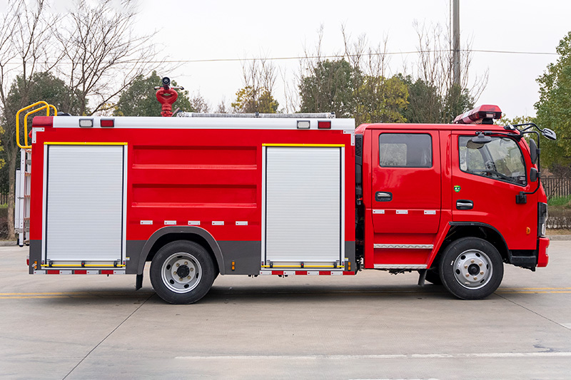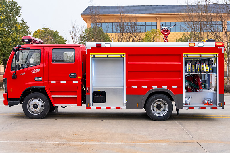 總體布置 | 整車由消防員乘員室和車身兩大部分組成,車身布置采用外露罐式結(jié)構(gòu), 左右兩側(cè)為器材箱,中部為水罐,器材箱后部為泵房。 |