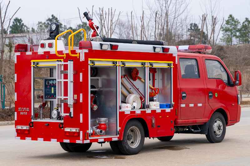 總體布置 | 整車由消防員乘員室和車身兩大部分組成,車身布置采用內(nèi)藏罐式結(jié)構(gòu), 左右兩側(cè)為器材箱,中部為水罐,器材箱后部為泵房。 |