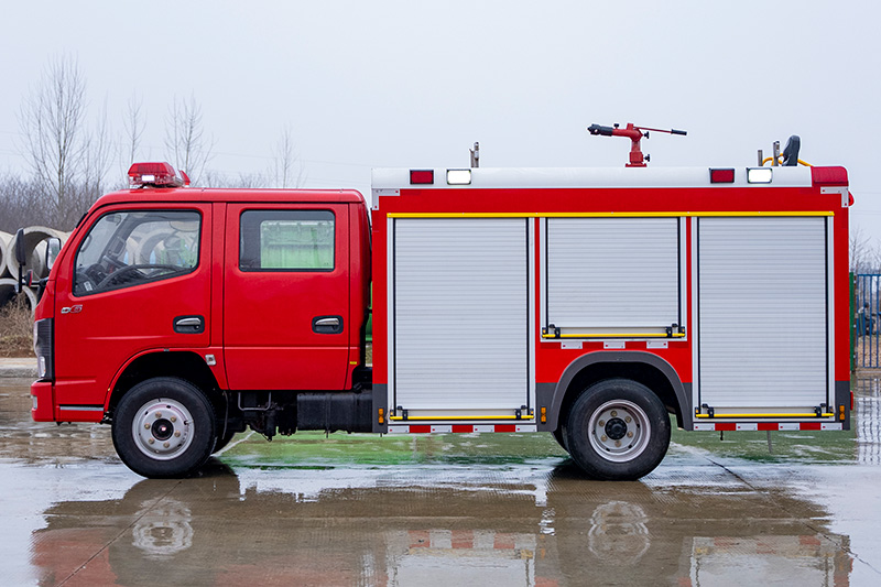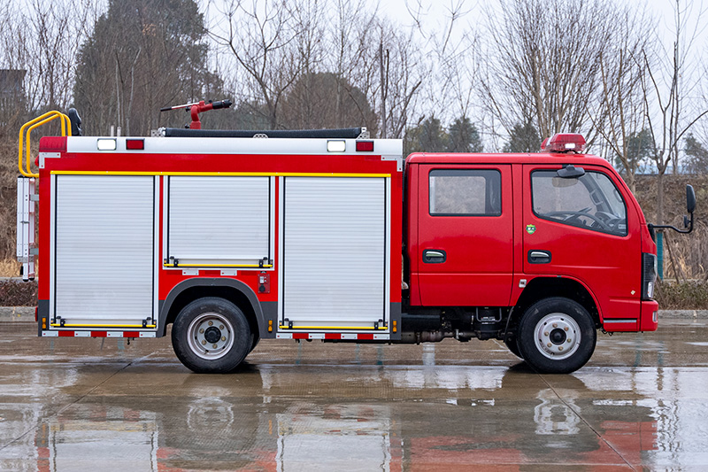 總體布置 | 整車由消防員乘員室和車身兩大部分組成,車身布置采用內(nèi)藏罐式結(jié)構(gòu), 左右兩側(cè)為器材箱,中部為水罐,器材箱后部為泵房。 |